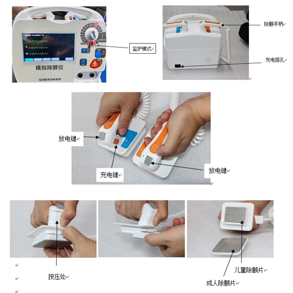 模拟除颤仪是专为急救训练研制开发,模型完全按照真实除颤仪的操作设计,满足医学生进入临床前的技能训练以及培训急救人员进行除颤训练。同时具有模拟AED功能。进行CPR教学时,可与任何厂家的模拟人配套使用。